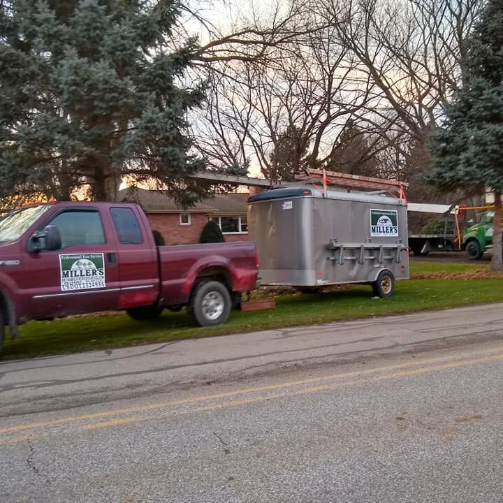 Miller’s Tree Service is a family business that covers the Lake Erie region of Northwest Pennsylvania and Northeast Ohio. Owner Bryan Miller has over 35 years of experience trimming and removing trees. A 65-foot bucket truck (aka cherry picker), a 28 ton, 145-foot crane, wood chippers, stump grinders, and an arsenal of chain saws allow Bryan and his team to efficiently and confidently tackle your tree service needs.